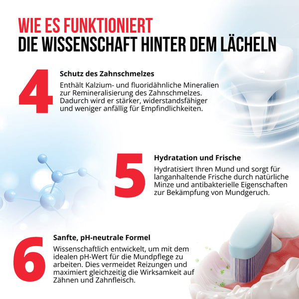 - Regenerierend – Repariert mikroskopische Schäden für stärkere, gesündere Zähne.