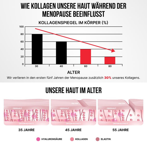 Wenn Ihre Haut stumpf und leblos aussieht, können Kollagenpräparate helfen, die Feuchtigkeit zu steigern und die Strahlkraft wiederherzustellen. Nach einigen Wochen wird Ihre Haut einen gesunden, jugendlichen Glanz entwickeln.